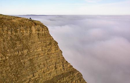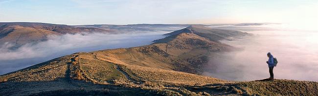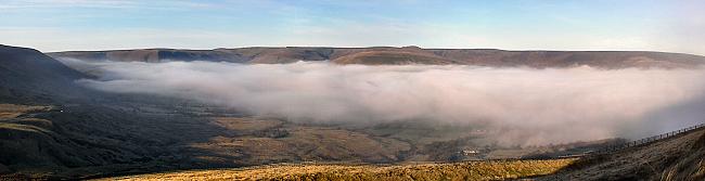 9 Dec 2001 Clear sunshine west of the Pennines but thick fog in the east which crept into the Edale and Hope valleys. It lifted into low cloud for a while which engulfed the ridge, dropped again later, then rose again towards evening as the breeze picked up.