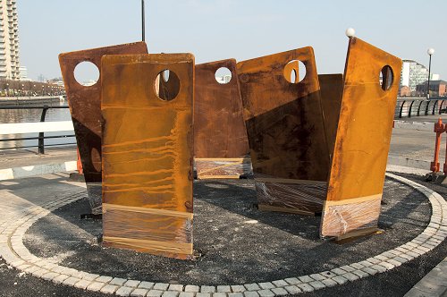 Casuals, nearing completion. One of the Unlocking Salford Quays sculptures.