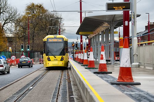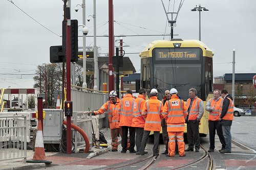 21 Nov 12 Metrolink works update in Droylsden. Cloudy.