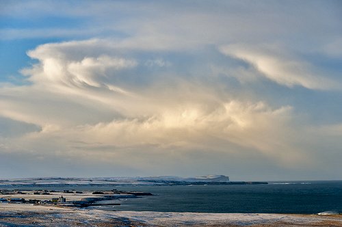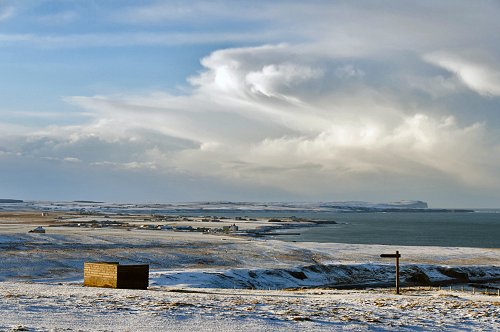 A huge cumulo-nimbus cloud beyond Dunnet Head.