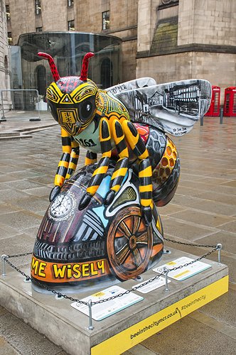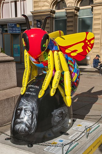 10 Aug 18       A wander around the city centre, mainly to photograph the Bees.  Rain at first, brighter later.