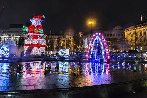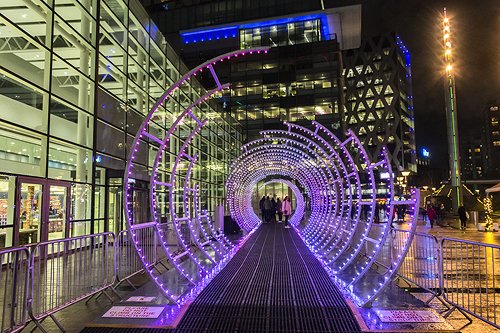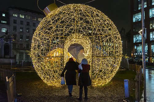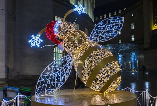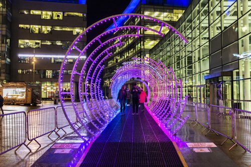 11 Dec 19 Christmas light displays, Manchester and Salford Quays. Showers.