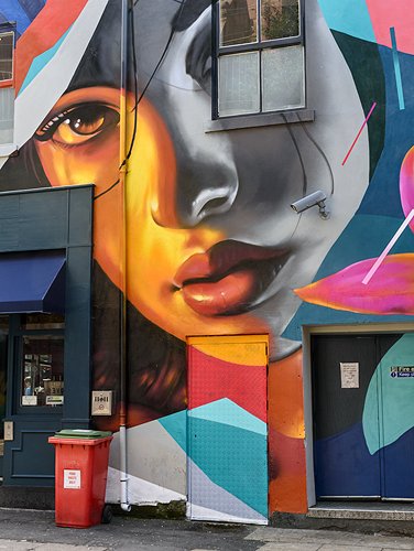 Mural by The Hass (Hasan Kamil), on the wall of the Revolution bar, Oxford Road.