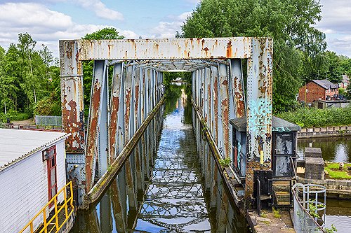 The Barton Swing Aqueduct which takes the Bridgewater Canal