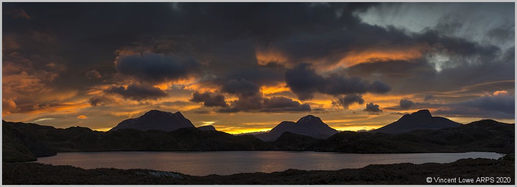 Sunrise over the Coigach peaks, Cul Mòr, Cùl Beag and Stac Pollaidh.