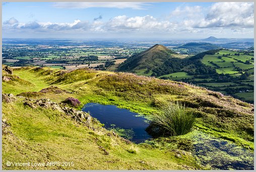 The prominent hill in the middle distance is called The Lawley and in the far distance is the Wrekin. Get this image from alamy